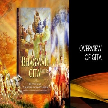 The Gita itself is a chapter from the epic known as Mahabharata wherein a dialogue takes place between the prince Arjuna and his friend and chariot driver Lord Krishna on the brink of a great dynastic war. Chapter Summaries of the Bhagavad Gita. In the final and longest chapter the Gita offers a final summary of its teachings in the previous chapters.